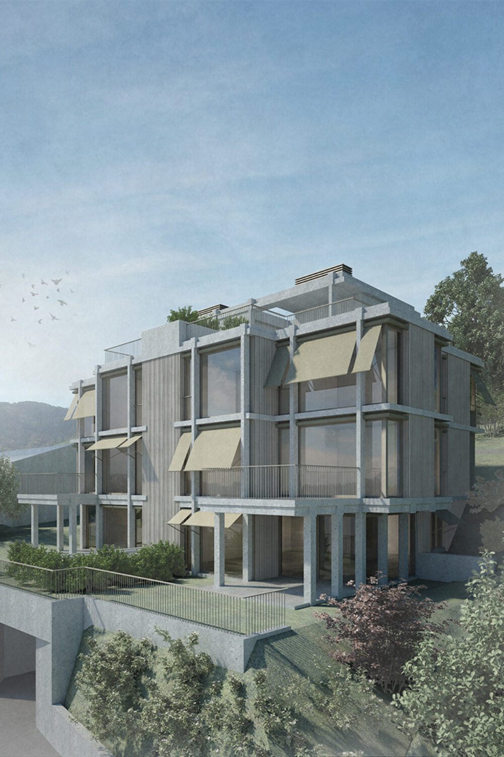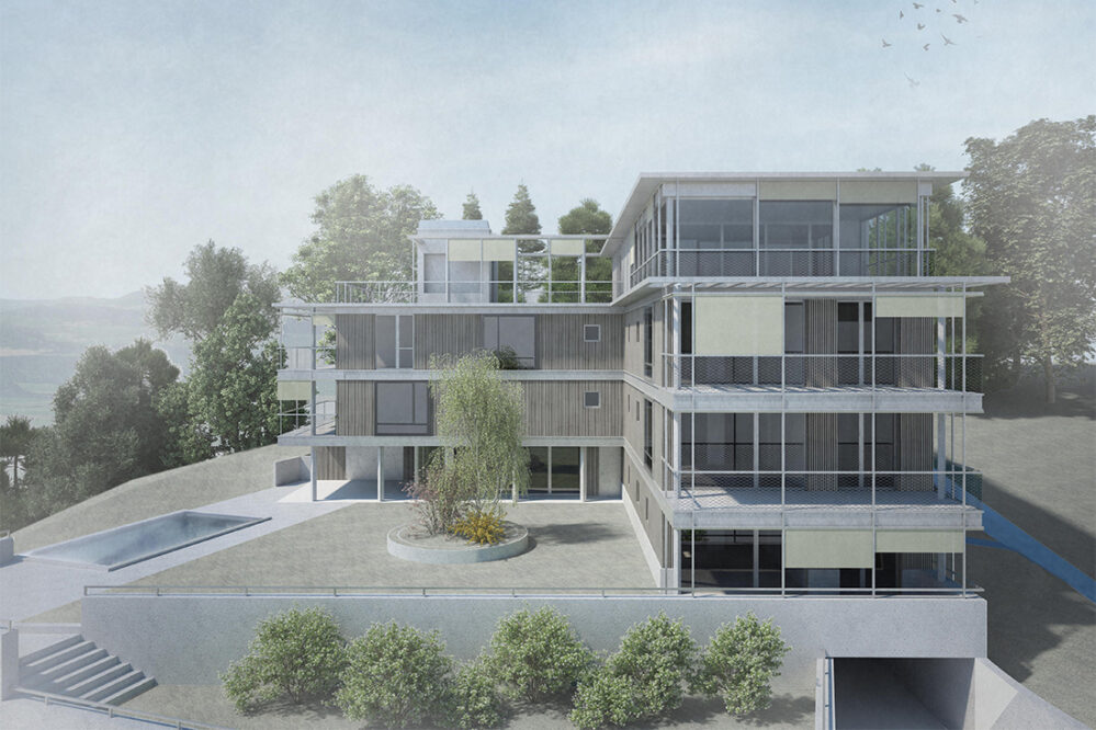 Unser Projektbeitrag für den zweistufigen Studienauftrag im selektiven Verfahren Neubau EFH—Ensemble Rebackerstrasse Küssnacht ZH.